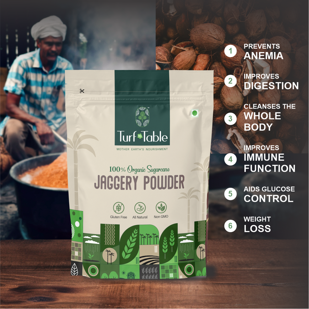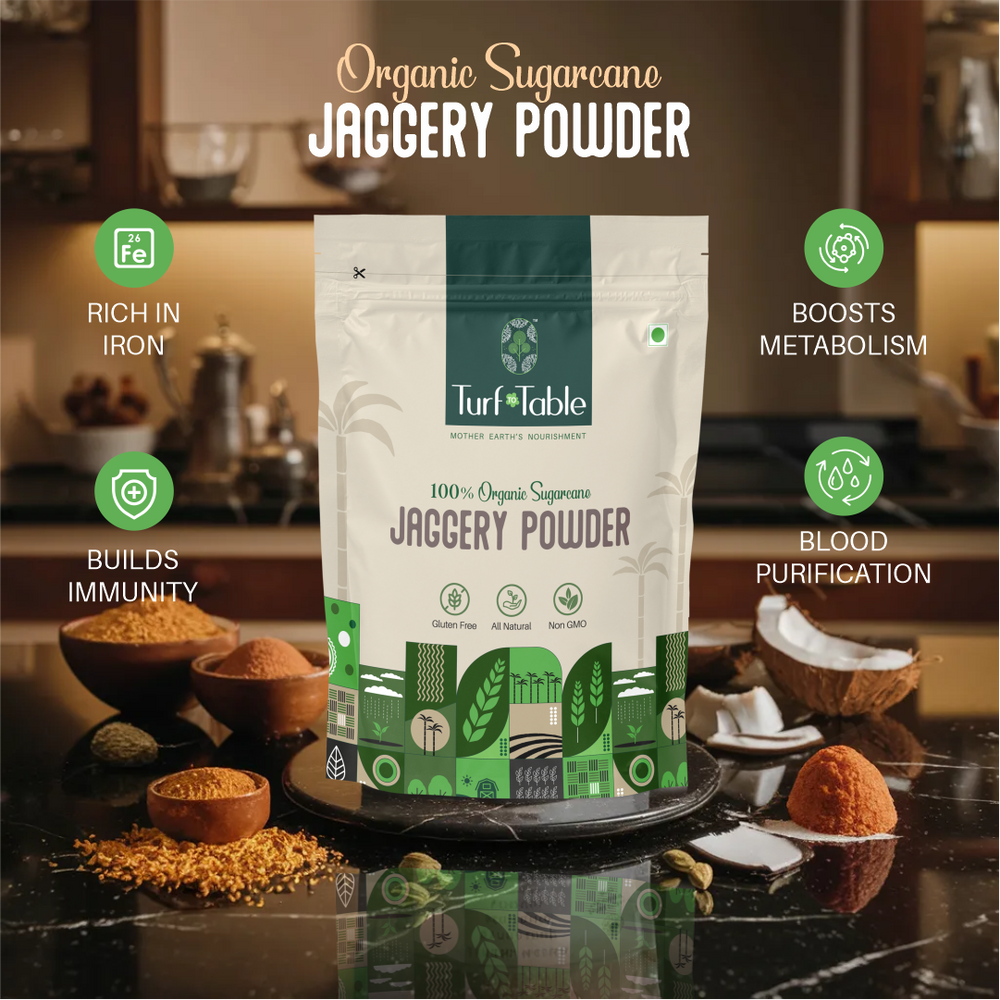 Our Premium Organic Jaggery Powder brings you the purest sweetness nature has to offer. Made from carefully selected organic sugarcane, our Jaggery powder retains all the Natural Goodness and Nutrients.